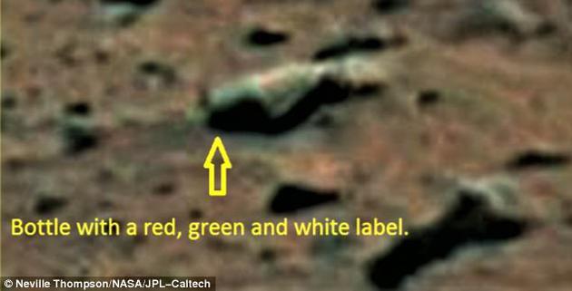 这张照片是由美国宇航局的勇气号漫游车在2007年11月份拍摄的。今年已经64岁的爱好者托马斯·米勒(Thomas Miller)在查看探测器拍摄的火星图像时注意到了这个异常物体。他说:"这个东西的边缘非常清晰,这个瓶子的设计上有些不同,但是总体还是可以辨认出来的。"他说:"当然我们没有办法确认这究竟是不是真的是一个酒瓶子。但它看上去真的非常像。要是未来我们有机会登上这颗行星,我们可以坐下来喝一杯啤酒,那感觉肯定不错。"