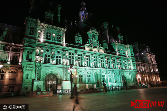 美国将退出《巴黎协定》,巴黎市政厅“变绿”,以示抗议。