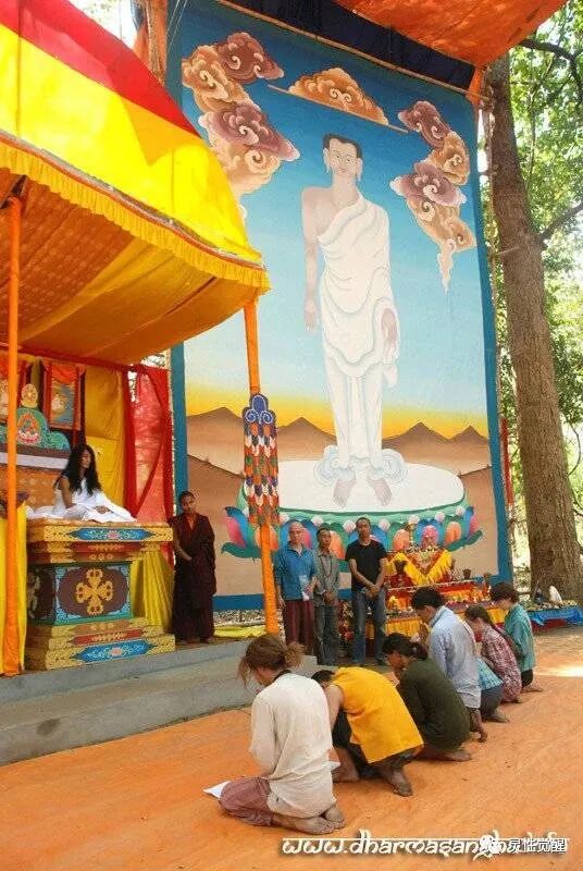 法会现场围墙上挂着他15岁时禅定的照片,他那时因为回忆起了宿命通和过去的禅定而自行去菩提树下打坐。
