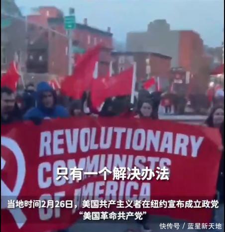 当地时间2月26日,美国共产主义者在纽约宣布成立政党——“美国革命共产党”,并在纽约街头高喊着“共产主义者是革命的”“只有一个解决办法,那就是共产主义革命”等口号进行游行。游行民众大都来自美国各个族裔的年轻人。